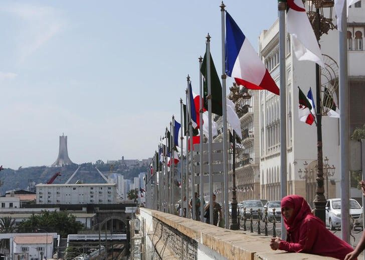 A woman stands near Algerian and French flags ahead of the arrival of French President Emmanuel Macron in Algiers, Algeria August 25, 2022. REUTERS/Ramzi Boudina