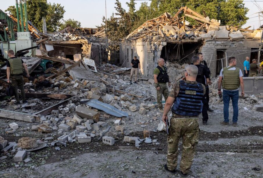 Police and military officers inspect destroyed houses by a strike, amid Russia's invasion, in Mykolaiv, Ukraine, August 29, 2022. REUTERS/Umit Bektas