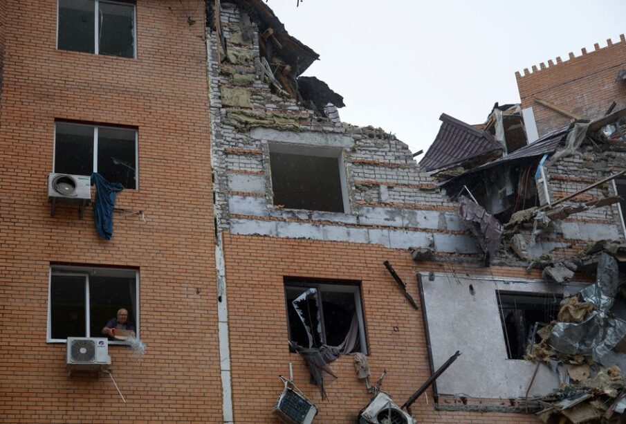 A local man throws debris out of a broken window in a residential building heavily damaged by a Russian missile attack in Mykolaiv, Ukraine October 23, 2022. REUTERS/Valentyn OgirenkoWestern countries accused Russia on Monday of plotting to use a threat of a bomb laced with nuclear material as a pretext for escalation in Ukraine, as Moscow evacuated civilians from a southern city in anticipation of a major battle.