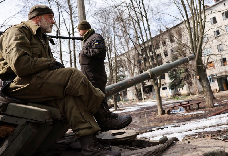© Reuters. Ukrainian servicemen stand atop a tank, amid Russia's invasion of Ukraine, near the bombed-out eastern city of Bakhmut, in the eastern Donetsk region, Ukraine, April 2, 2023. REUTERS/Violeta Santos Moura
