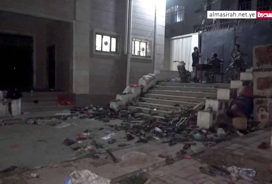 Abandoned footwear and other belongings lie on the ground after a stampede in Sanaa, Yemen, April 19, 2023, in this still image taken from video. Al Masirah TV/via Reuters At least 78 people were killed in a stampede in the Yemeni capital Sanaa as hundreds gathered in a school to receive aid, witnesses and Houthi media said on Thursday.