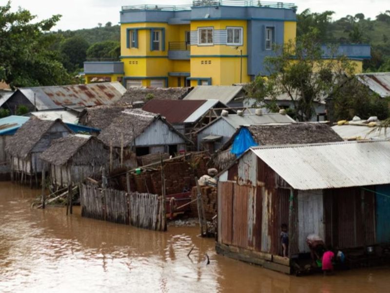 In the Diana and Sava regions in the north, bridges and roads were washed away and houses and rice fields were submerged. Residents paddled around their villages in canoes looking to help others trapped in their homes as the water level nearly reached the roofs of some buildings.