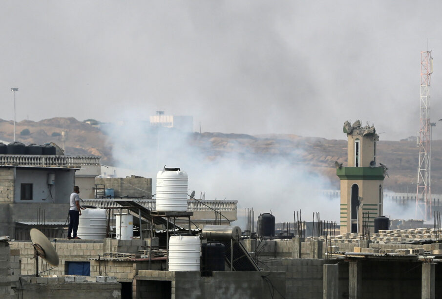 A man looks on as smoke rises following Israeli strikes during an Israeli military operation in Rafah, in the southern Gaza Strip, May 28, 2024. REUTERS/Hatem Khaled