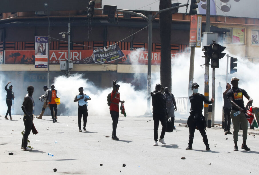Demonstrators gesture as police use tear gas to disperse protesters during a demonstration against Kenya's proposed finance bill 2024/2025 in Nairobi, Kenya, June 25, 2024. REUTERS/Monicah Mwangi