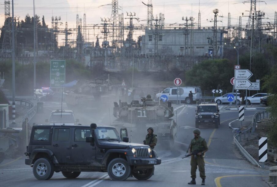 Israeli tanks move near the Israeli Gaza border Wednesday in Israel. Erik Marmor, Associated Press