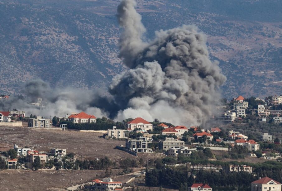 An Israeli warplane struck the edges of the capital Beirut, killing two people and wounding 15, including a woman in critical condition, Lebanon’s health ministry said. That took deaths overnight and on Thursday to 28 and over 600 since Monday.