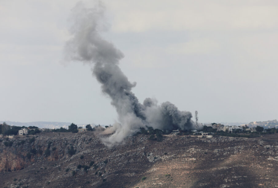 Smoke billows over Arnoun, amid ongoing hostilities between Hezbollah and Israeli forces, as seen from Marjayoun, near the Lebanese border with Israel, October 17, 2024. REUTERS/Karamallah Daher