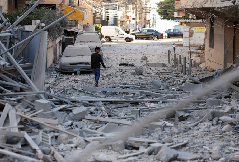 A person inspects the damage, following Israeli strikes, amid the ongoing hostilities between Hezbollah and Israeli forces, in Tyre, southern Lebanon, October 23, 2024. REUTERS/Aziz Taher