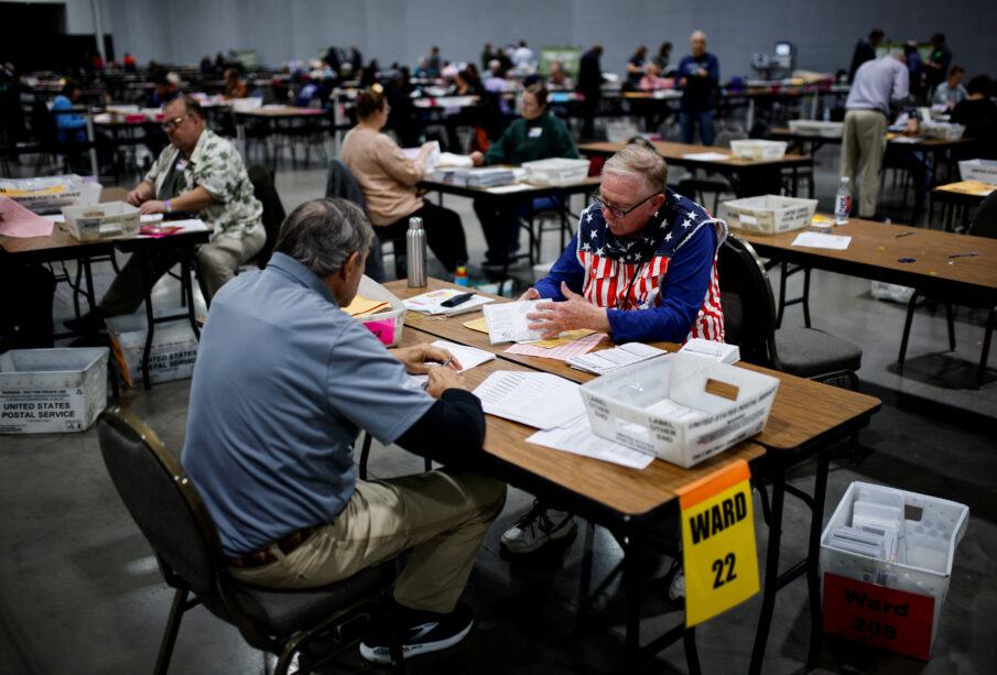 Electoral workers count votes during the 2024 U.S. presidential election, in Milwaukee, Wisconsin, U.S., November 5, 2024. REUTERS/Eduardo Munoz