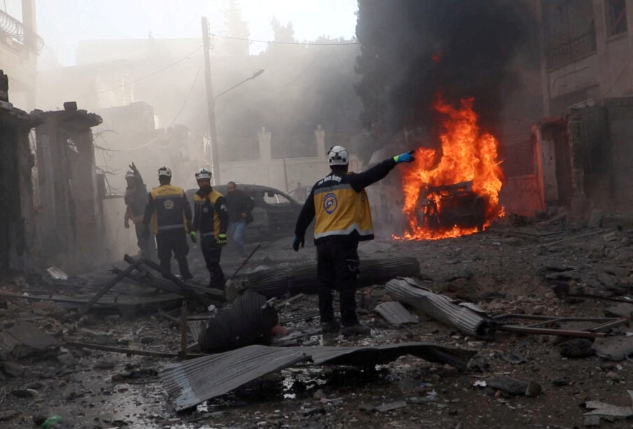 White Helmets members work at the scene of what the organisation says is a strike, in Idlib, Syria, released December 1, 2024, in this still image taken from a handout video. The White Helmets/Handout via REUTERS