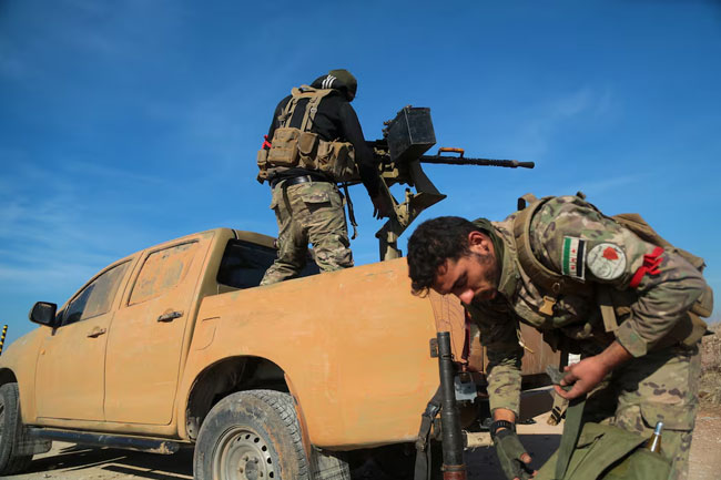 At least 300 fighters, primarily from Iraq’s Badr and Nujabaa groups, crossed late on Sunday using a dirt road to avoid the official border crossing, two Iraqi security sources said, adding that they were there to defend a Shi’ite shrine.
