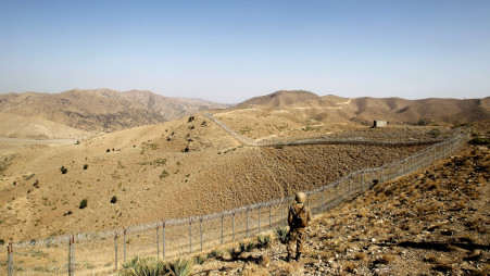 A soldier stands guard along the border fence outside the Kitton outpost on the border with Afghanistan in North Waziristan, Pakistan October 18, 2017. Photo :Reuters