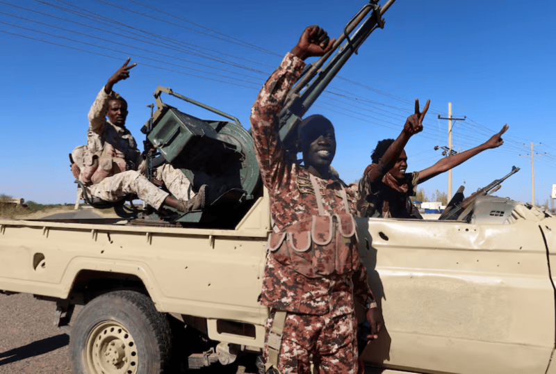 Sudan's army soldiers celebrate after entering Wad Madani, in Sudan, January 12, 2025. (Photo: REUTERS)