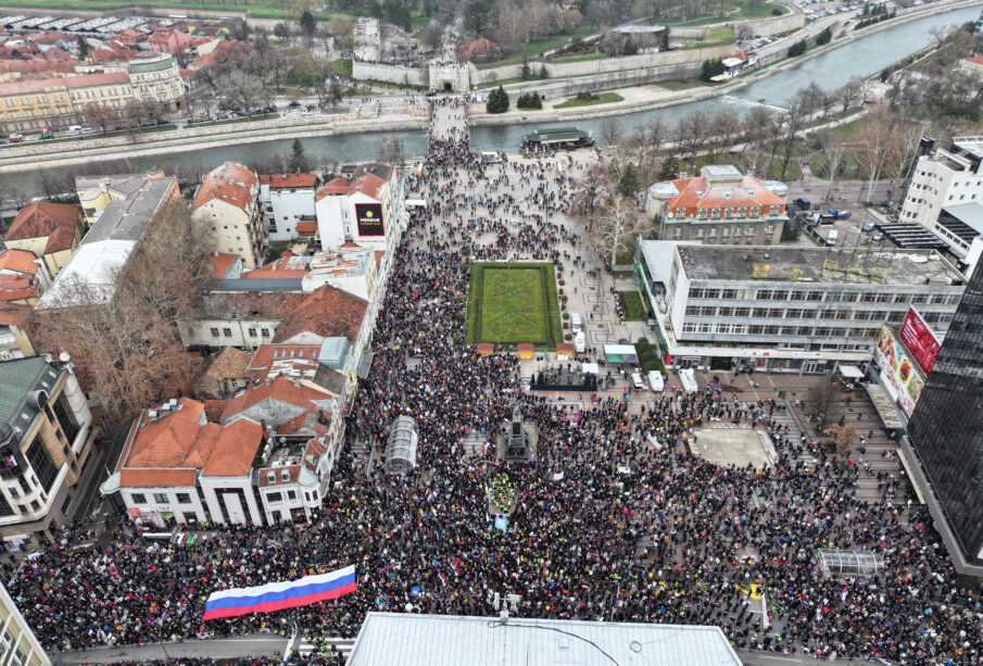 Tens of thousands of people flocked to the southern town of Nis on Saturday to commemorate victims of a railway station disaster and take part in a student-led protest that has become the biggest threat yet to the Serbian president’s grip on power.