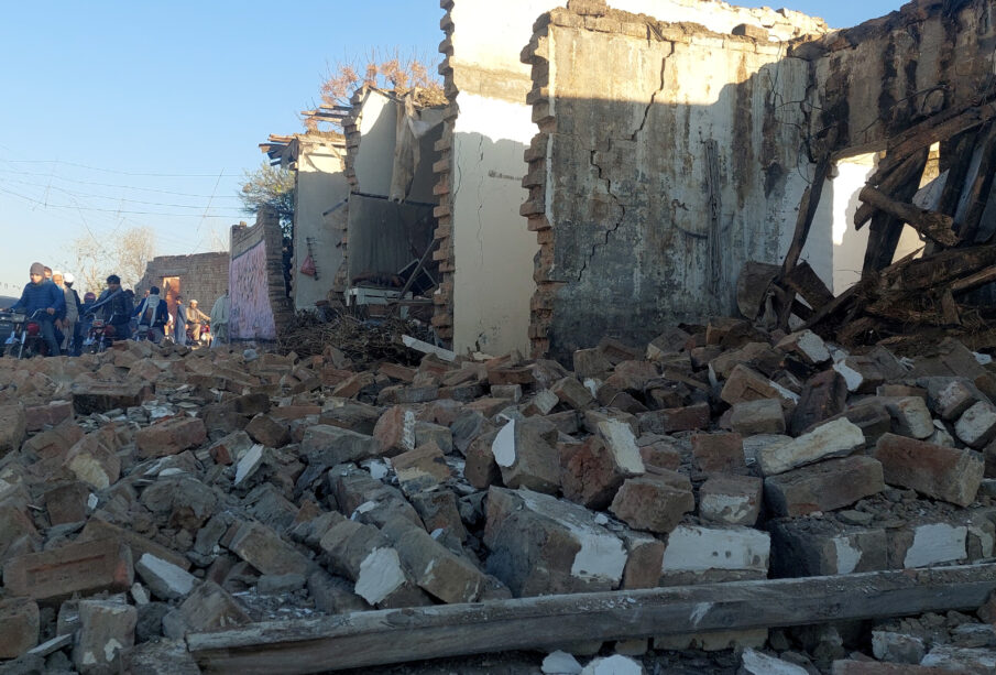 Video images from the scene showed people sifting through piles of bricks and clearing metal scaffolding.