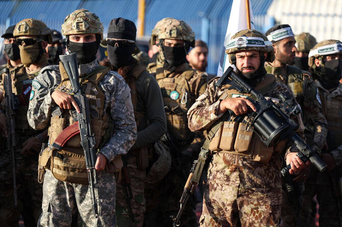 Military fighters affiliated with former Al-Qaeda affiliate Hayat Tahrir al-Sham. (AFP)