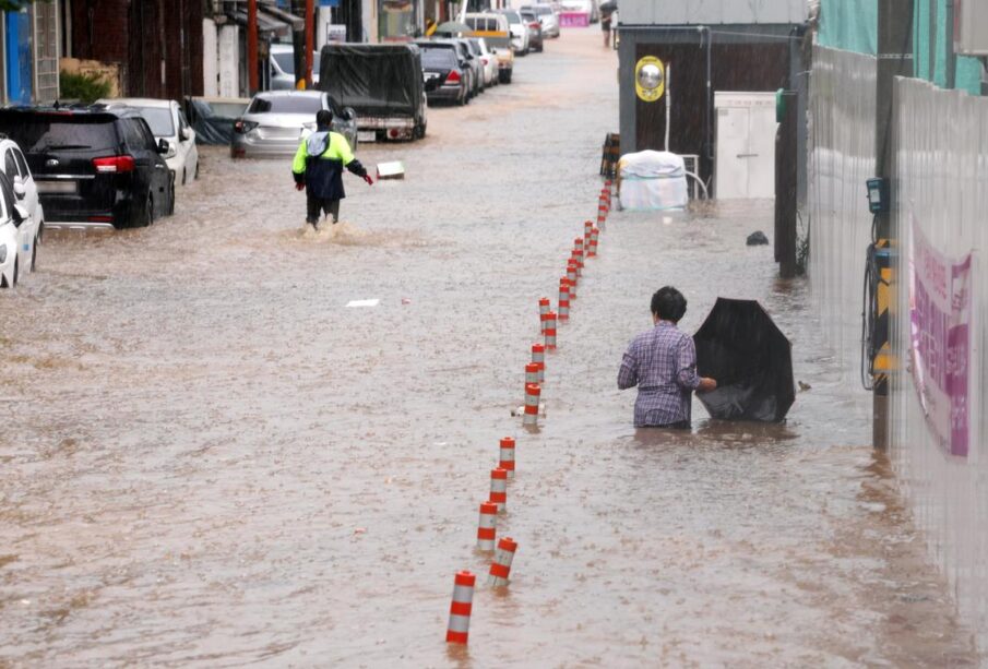 In the city of Gwangju, some 267 kilometres (166 miles) south of Seoul, 87 roads and 38 buildings were submerged within about two hours after torrential rain warnings were issued, according to the Yonhap News Agency.