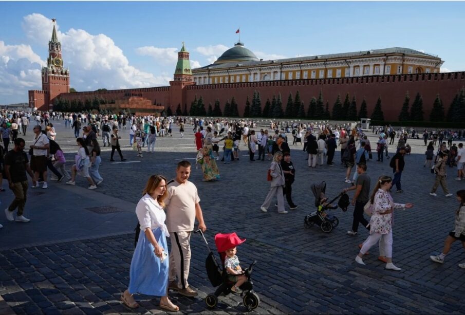 FILE – A family walks through Red Square in Moscow, Russia, Sunday, Aug. 4, 2024. (AP Photo/Alexander Zemlianichenko, File)BY KATIE MARIE DAVIES AP