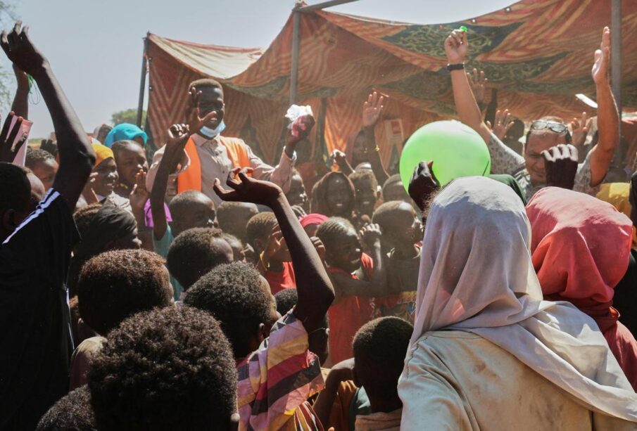 This photo released by The Norwegian Refugee Council (NRC), shows displaced children from el-Fasher playing at a camp where they sought refuge from fighting between government forces and the RSF, in Tawila, Darfur region, Sudan, Monday, Nov. 3, 2025. | Photo Credit: APBy Fatma Khaled, Associated Press