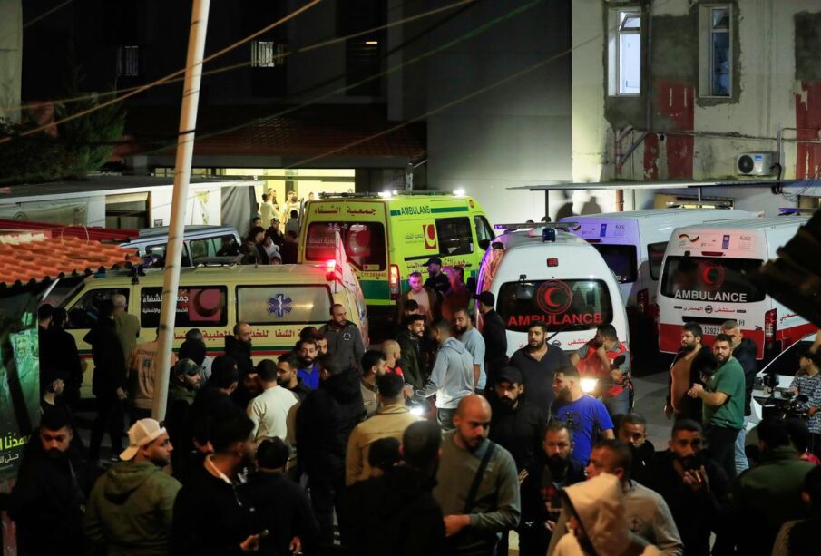 People gathering next to ambulances outside a hospital where they brought the victims of the Israeli strike that hit the Ain al-Hilweh refugee camp in the southern port city of Sidon, Lebanon, on November 18, 2025. | Photo Credit: APAn Israeli strike on the southern Lebanese city of Sidon killed 13 people and wounded several others, the Lebanese Health Ministry said on Tuesday.