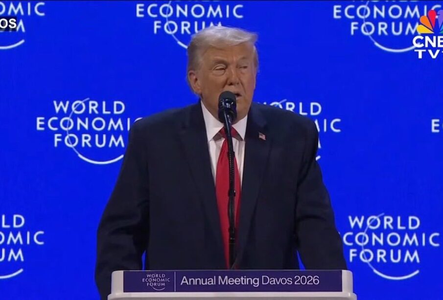 His arrival in Davos was delayed after a minor electrical problem on Air Force One forced a return to Washington to switch aircraft. As Trump’s motorcade headed down a narrow road to the speech site, onlookers — including some skiers — lined the route. Some made obscene gestures, and one held up a paper cursing the president.