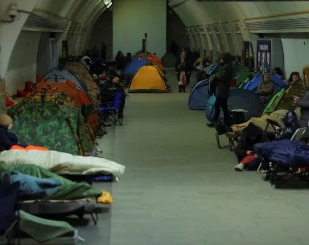 People take shelter inside a metro station during a Russian missile and drone strike, amid Russia's attack on Ukraine, in Kyiv, Ukraine January 24, 2026. REUTERS/Yan Dobronosov