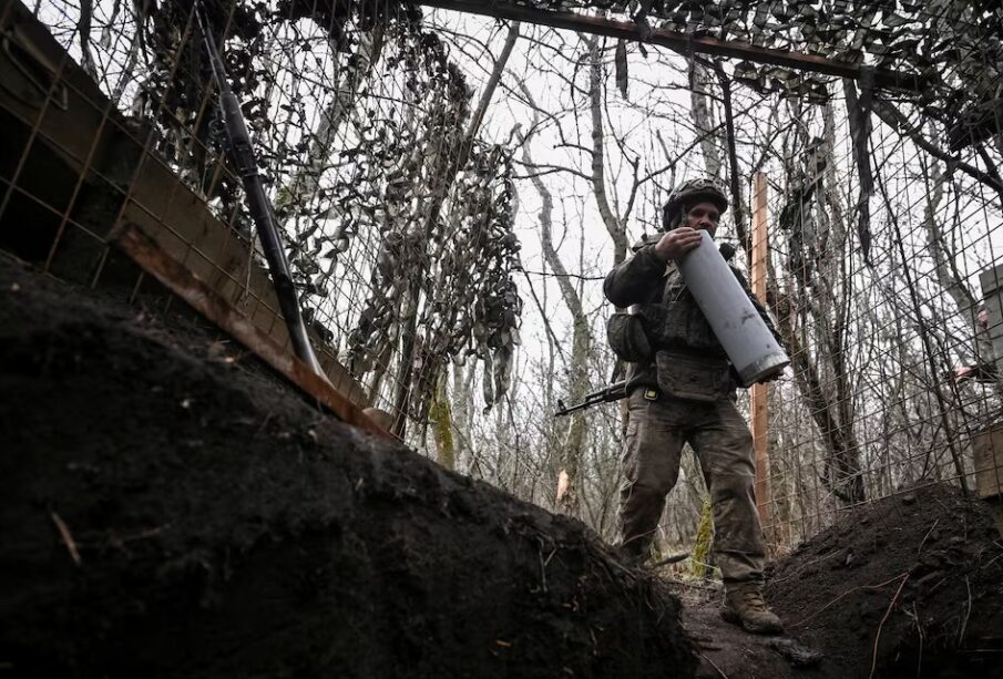 FILE PHOTO: An artilleryman of the 152nd Separate Jaeger Brigade carries a cartridge for a howitzer after firing towards Russian troops, amid Russia's attack on Ukraine, near the frontline town of Pokrovsk in Donetsk region, Ukraine December 11, 2025. REUTERS/Stringer/File Photo