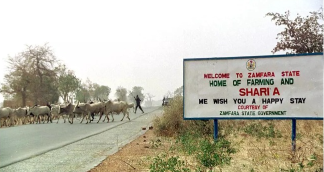 A file picture taken on May 8, 2018 shows a signboard which welcomes visitors to the state of Zamfara. Gunmen killed at least 48 people in attacks on three villages in Zamfara on Friday May 6, 2022. AFP - PIUS UTOMI EKPEIBy Ahmed Kingimi Reuters