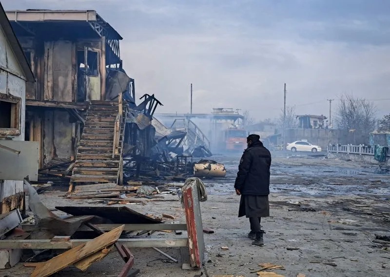 A man walks at the site of a drug users rehabilitation hospital destroyed in what the Taliban said was a Pakistani air strike in Kabul, Afghanistan, March 17, 2026. REUTERS/Yunus Yawar