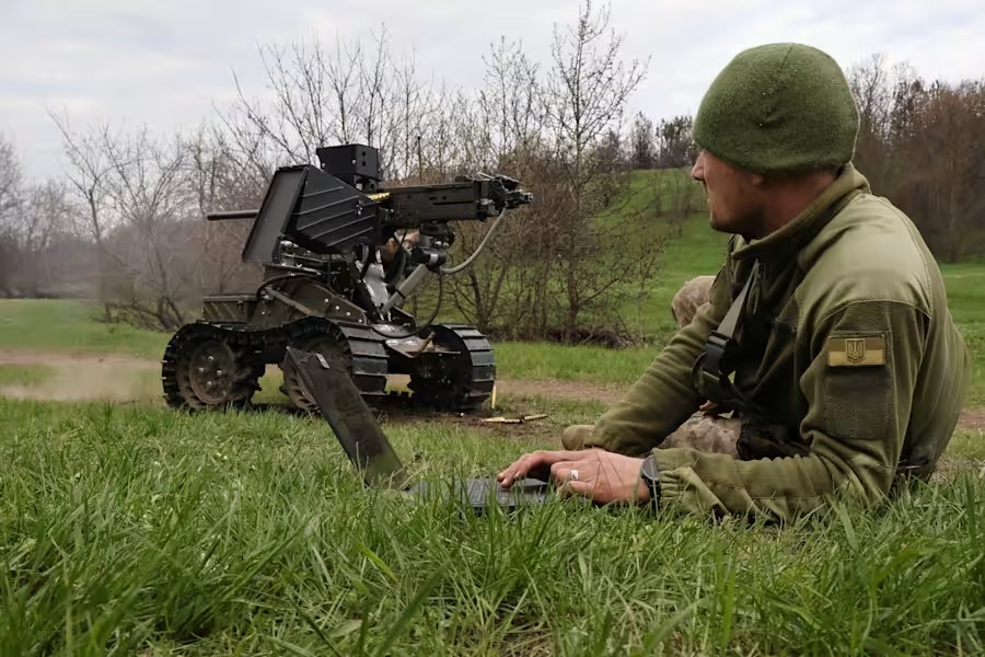 In this photo provided by Ukraine's 65th Mechanised Brigade press service on April 10, 2026, a Ukrainian serviceman prepares a machine gun on a combat ground drone during a training at the polygon in Zaporizhzhia region, Ukraine. (Andriy Andriyenko/Ukraine's 65th Mechanised Brigade via AP)Russia and Ukraine on Saturday accused each other of violating a brief ceasefire in their four-year-old war hours into the truce put in place to mark Orthodox Easter.