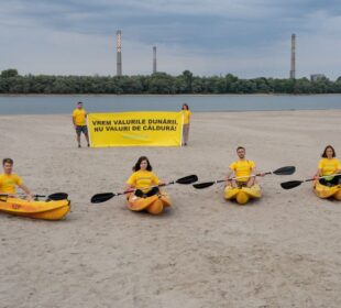 Greenpeace activists protested on the parched banks of the river Danube in Romania in a bid to draw attention to climate change ...Wave of shelling hits military, civilian targets in Russia’s offensive, Ukraine says